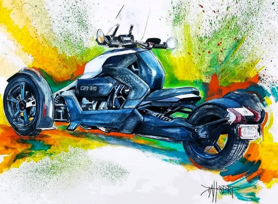 Painting of Hwin, better known as Whinnie, Deborah’s Ryker 900